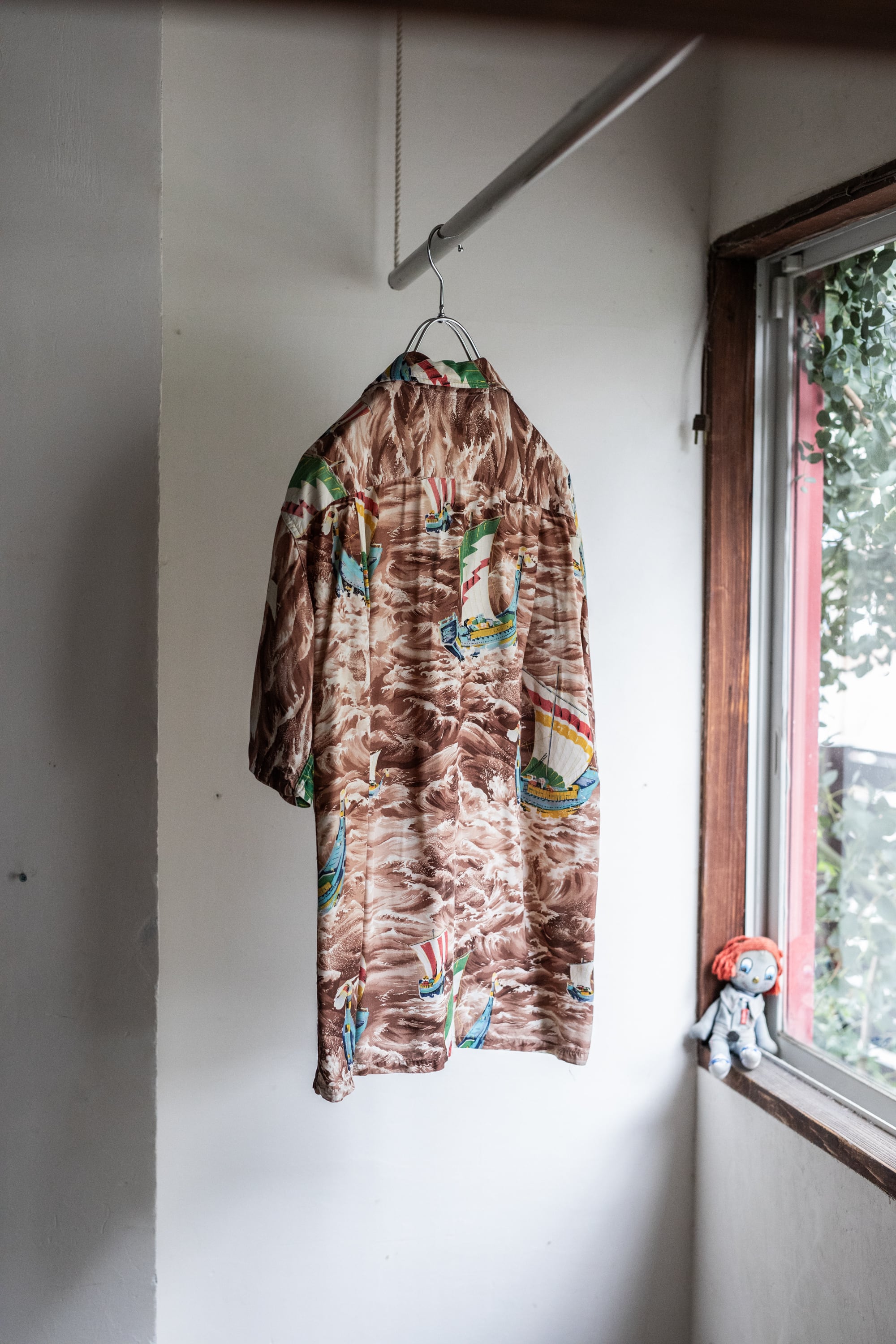 ブラウンベースのオープンカラーハワイアン。