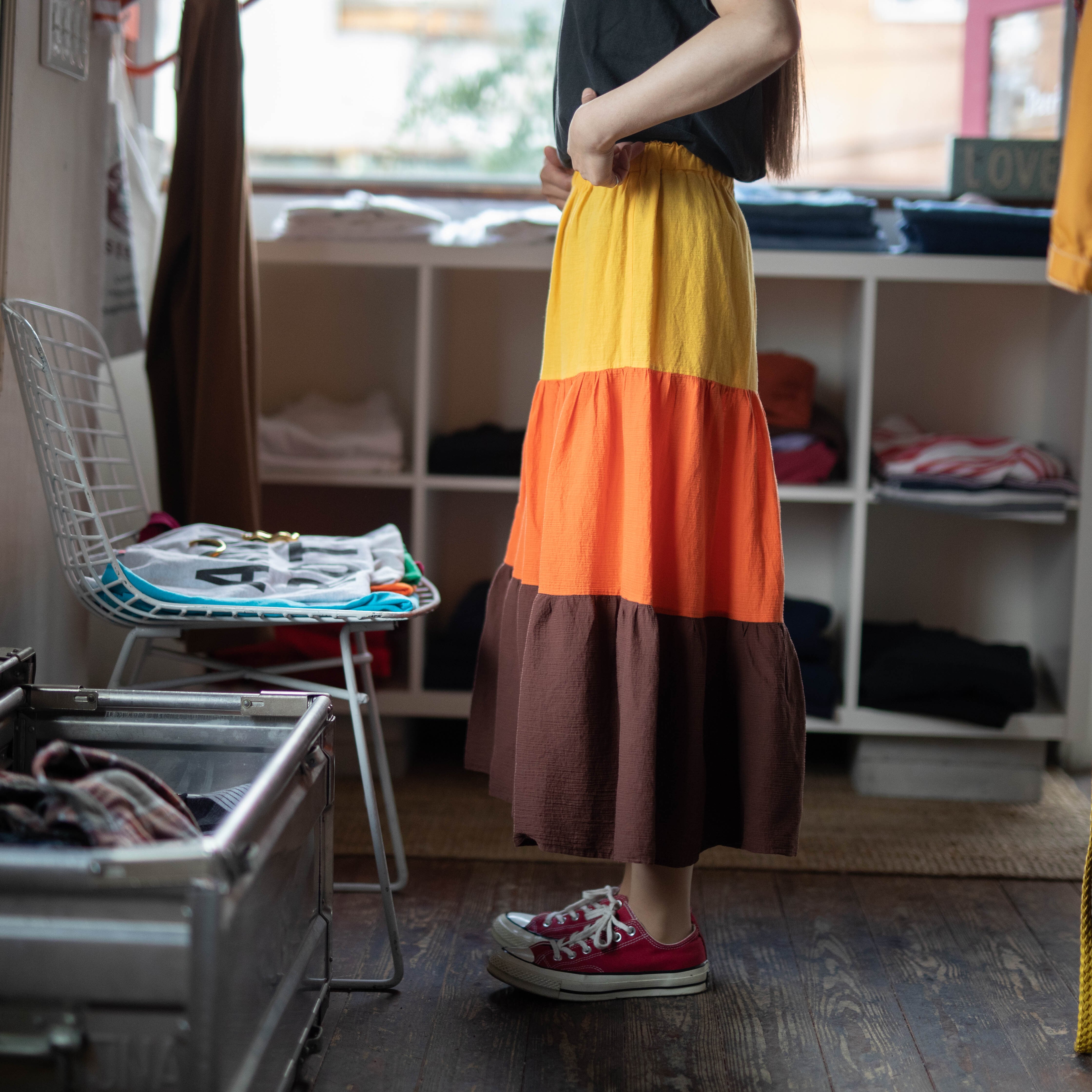 太ボーダーのサマースカート。