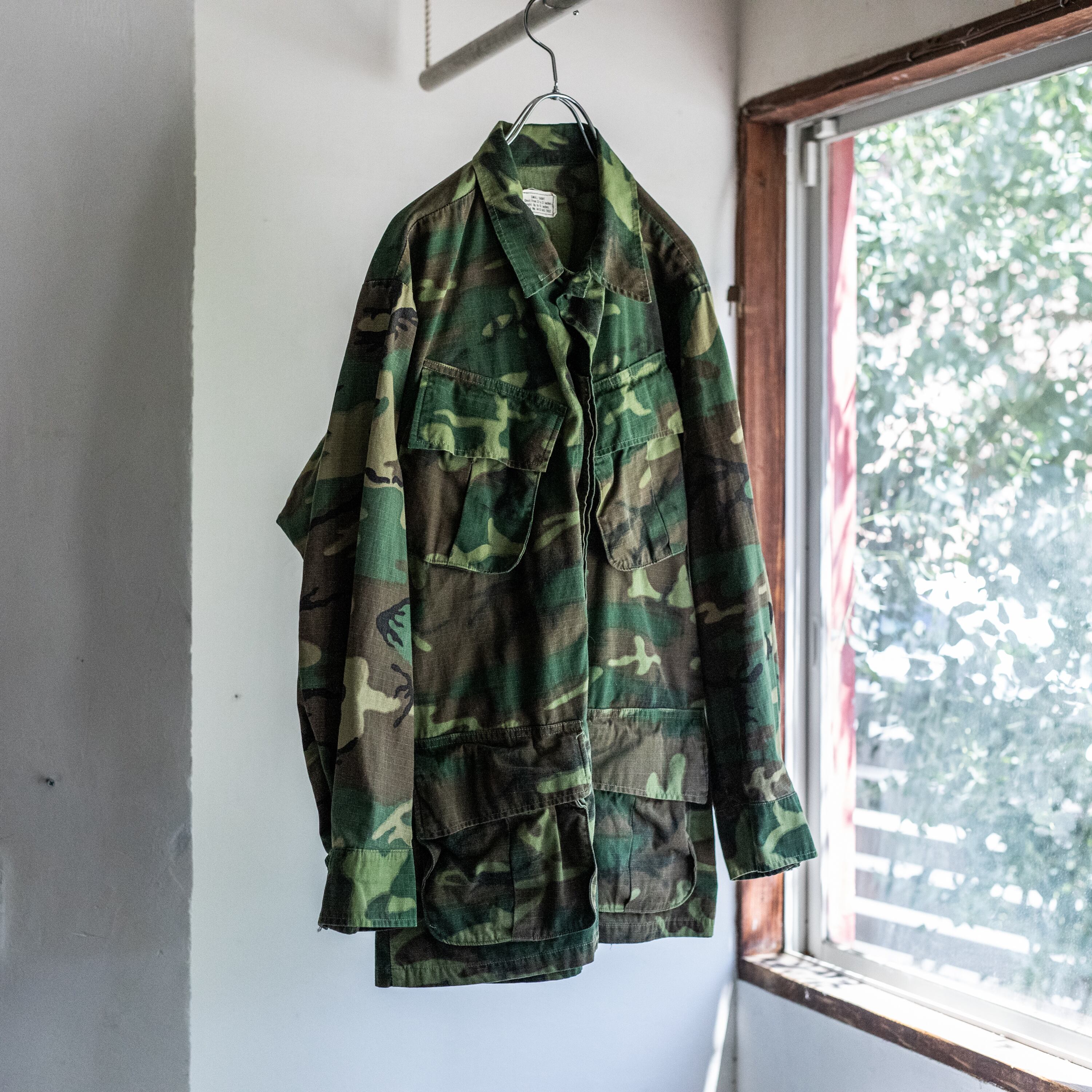 70's U.S. ARMY jungle fatigue jacket green leaf camo